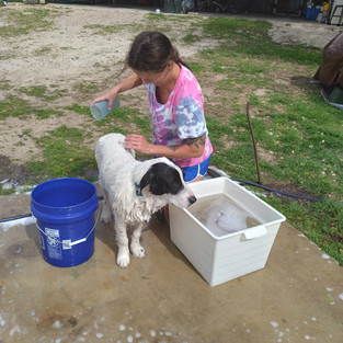 They are going to be some BIG boys! Although I question the purpose of giving them baths, as soon as they were out they proceeded to run around and roll in all the things again.